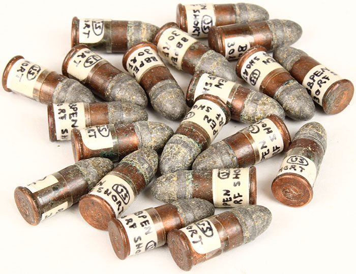 Lot of 20. 30 Short Rimfire. All by US Cartridge Company. HS=Raised ''US''. Grade: Very Good ++ - Value: 60 to 100