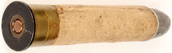 N/H 500 2 1/2'' paper/ coiled brass, brass base, black iron HD. Battery cup oval copper primer, PP. RNL. Grade: Excellent - Value: 40 to 70