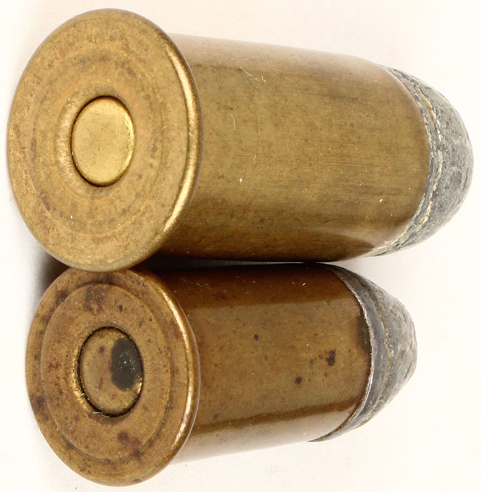 Lot of 2. (1) .58 Carbine (1.1'' case). NHS, RN lead w/ one visible groove. (1) .50 Remington Pistol. NHS. Flat tip lead. Grade: Excellent - Value: 20 to 40