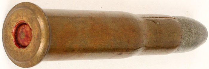 11mm Vicker's. HS:''SFM * GG(monogram) *'', World War I Anti-Balloon round. Flat tip tinned FMJ. Grade: Very Good ++ - Value: 30 to 120