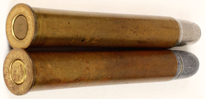 Lot of 2 (1) H/S= ''N 360 - 9.3 x 57 R'' D flat brass primer, FNL. 1-KN (1) H/S= ''N 360 - 9.3 x 57 R D'' flat brass primer, (shield) SP. TIN FN. Belted. Grade: Excellent - Value: 10 to 30
