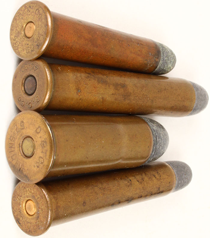 Lot of 4. All by Dominion Cartridge Co. & so headstamped. One each: 40-60 Marlin, 40-60 Winchester, 45-90 Winchester and 57 Snider. Grade: Excellent - Value: 40 to 70