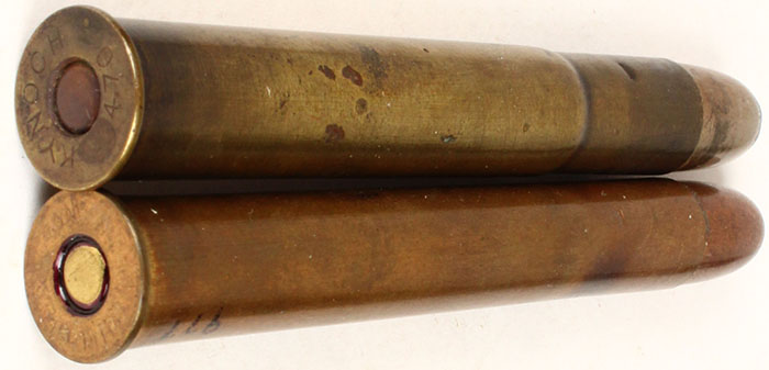 Lot of 2. (1) .470 Nitro Express (HS:''KYNOCH .470'', RN CN SP. (1) .450 Nitro Express (HS:''KYNOCH 450 NITRO'', RN CJCS FMJ. Grade: Very Good ++ - Value: 10 to 50