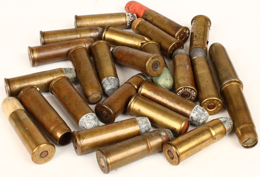 Lot of 25. 44-40 WCF. Various headstamps, types and bullet loadings. Grade: Very Good + - Value: 2 to 100