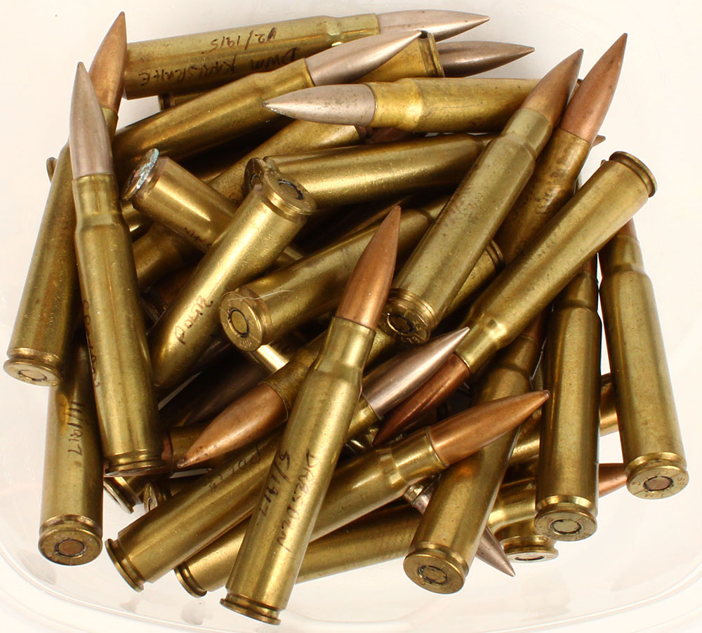 Lot of 40. 7.9x57mm Mauser. All World War I ''S'' ball. Various case manufacturers, both with & without ''Rifle'' and loaded with copper jacketed or cn clad steel projectiles. Grade: Very Good ++ - Value: 40 to 60
