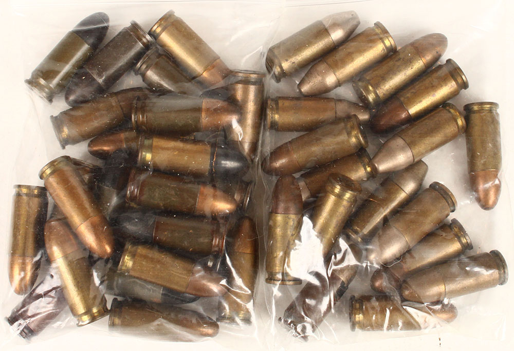 Lot of 41. 9x19mm Parabellum. German Military Ball. (24) World War II ball, brass and lacquered steel cases, various case manufacturers. (17) World War I ball, brass cases, various manufacturers. Grade: Very Good ++ - Value: 20 to 40