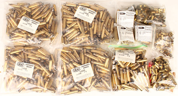 Large lot of 500 unprimed brass 7.5x55 SWISS and other mixed variations. Grade: Excellent - Value: 2 to 200