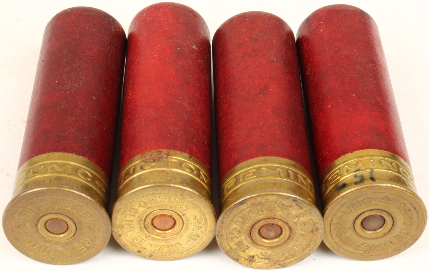 Lot of 4 H/S: REM-UMC NITRO CLUB, 12ga, loaded shotshells, red paper cases, 2 1/2'' OAL. Grade: Excellent - Value: 6 to 60