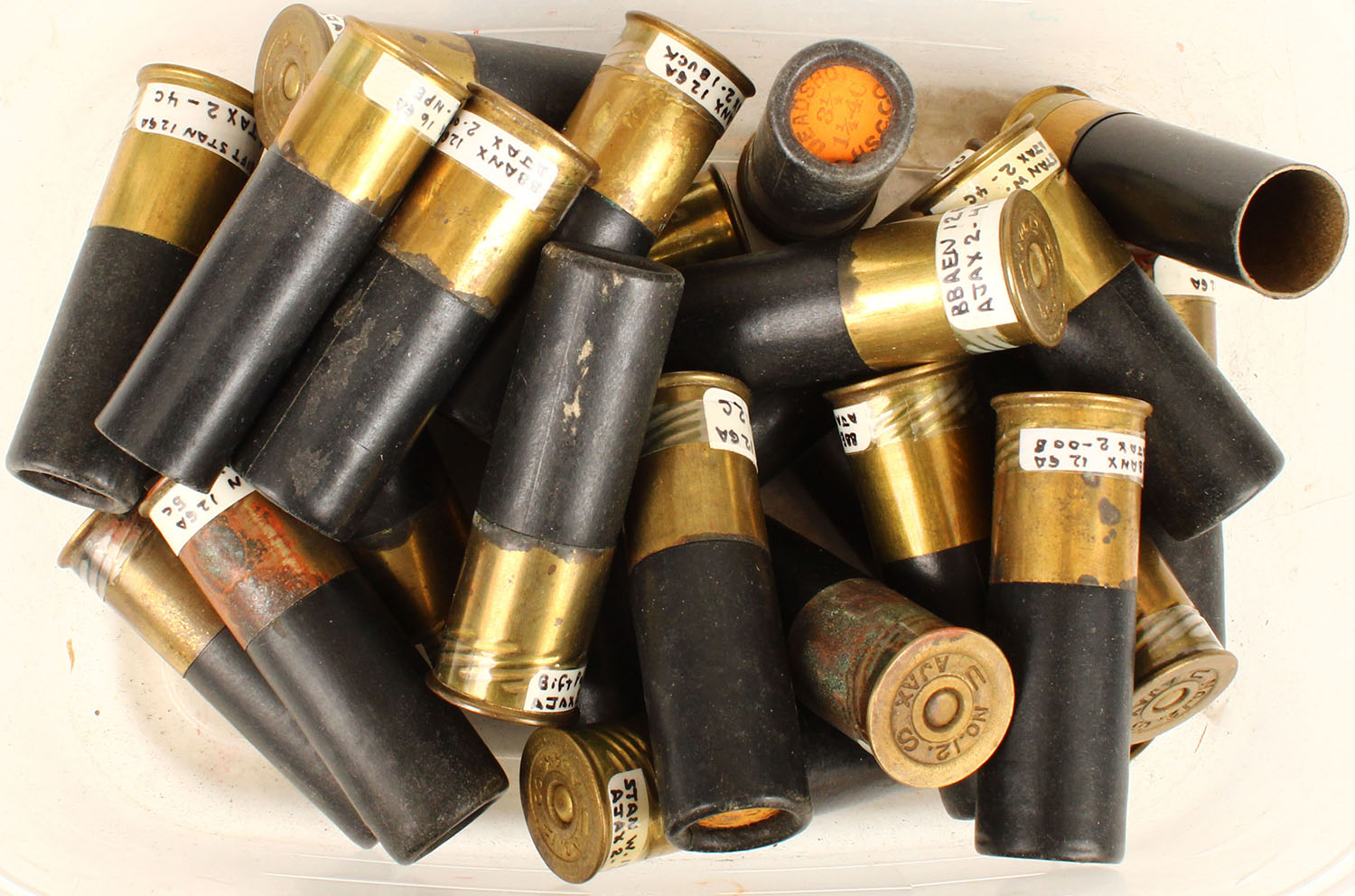 | Large lot of loaded and empty paper shotshells, 12 gauge. Grade...