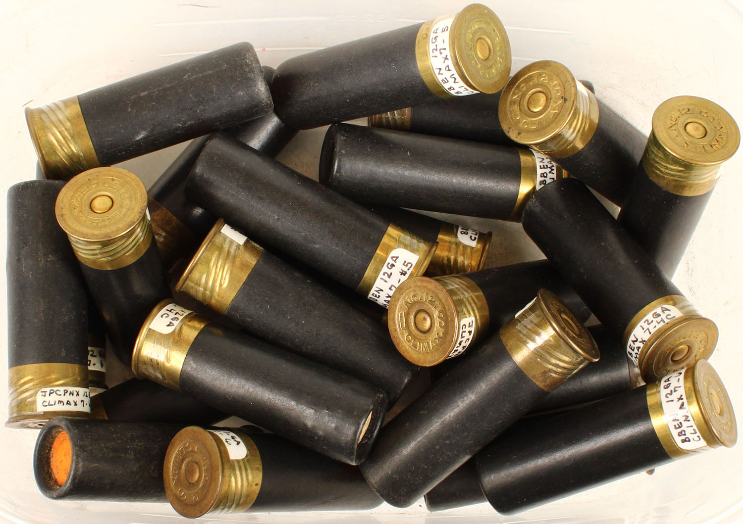 | Large lot of loaded paper shotshells, 12 gauge. Grade: Excellen...
