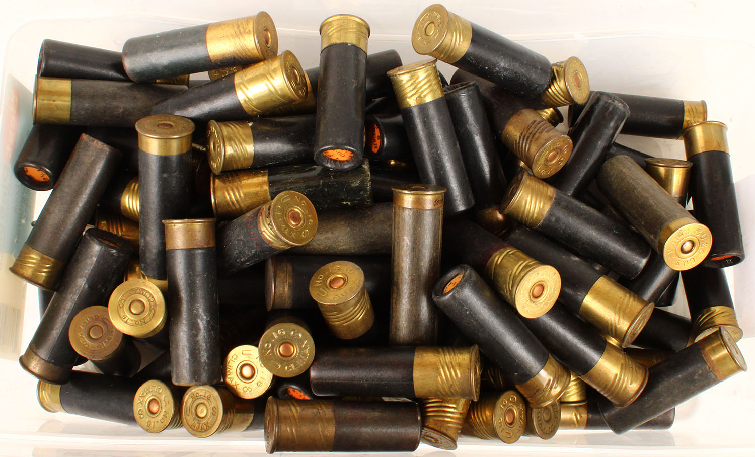 | Large lot of loaded paper shotshells, 16 gauge. Grade: Excellen...