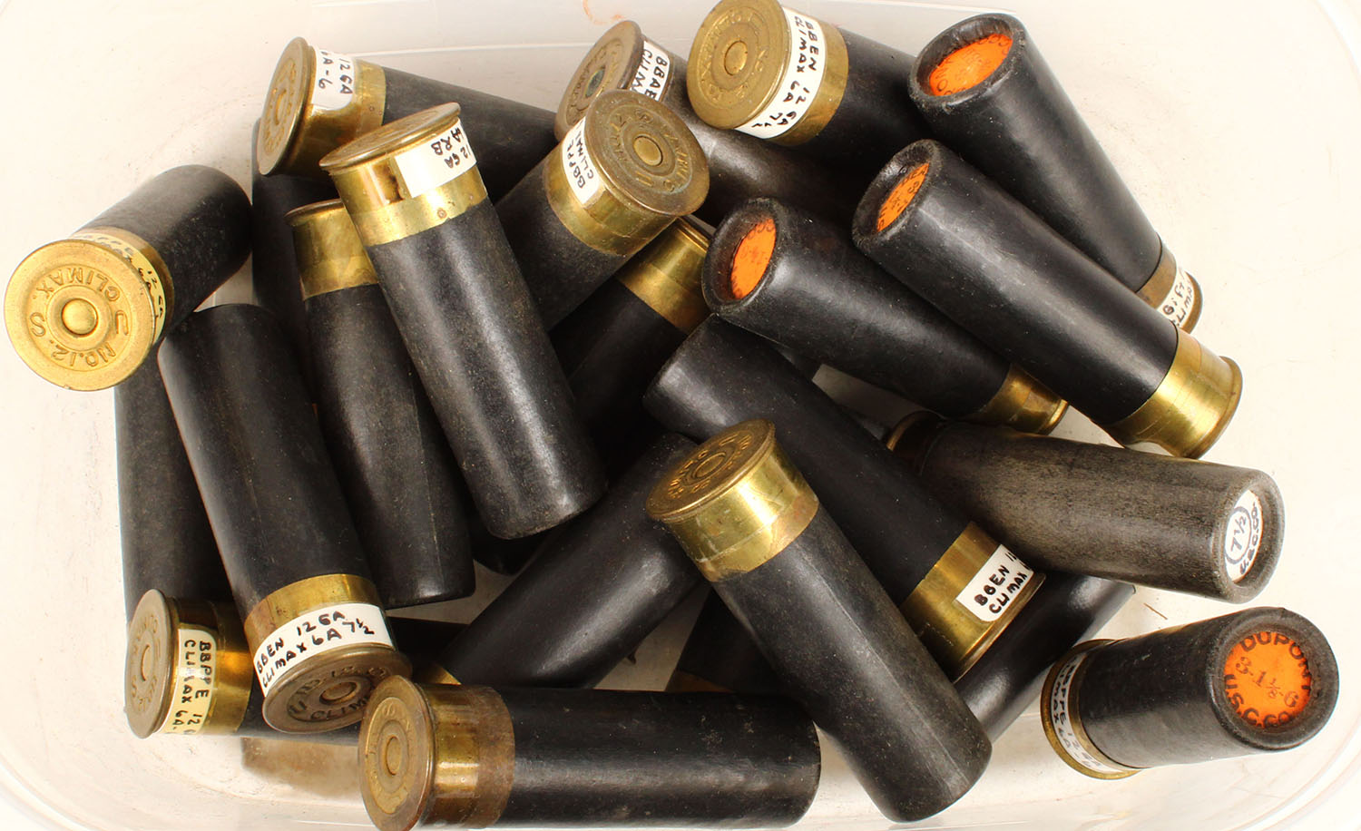 | Large lot of loaded paper shotshells, 12 gauge. Grade: Excellen...