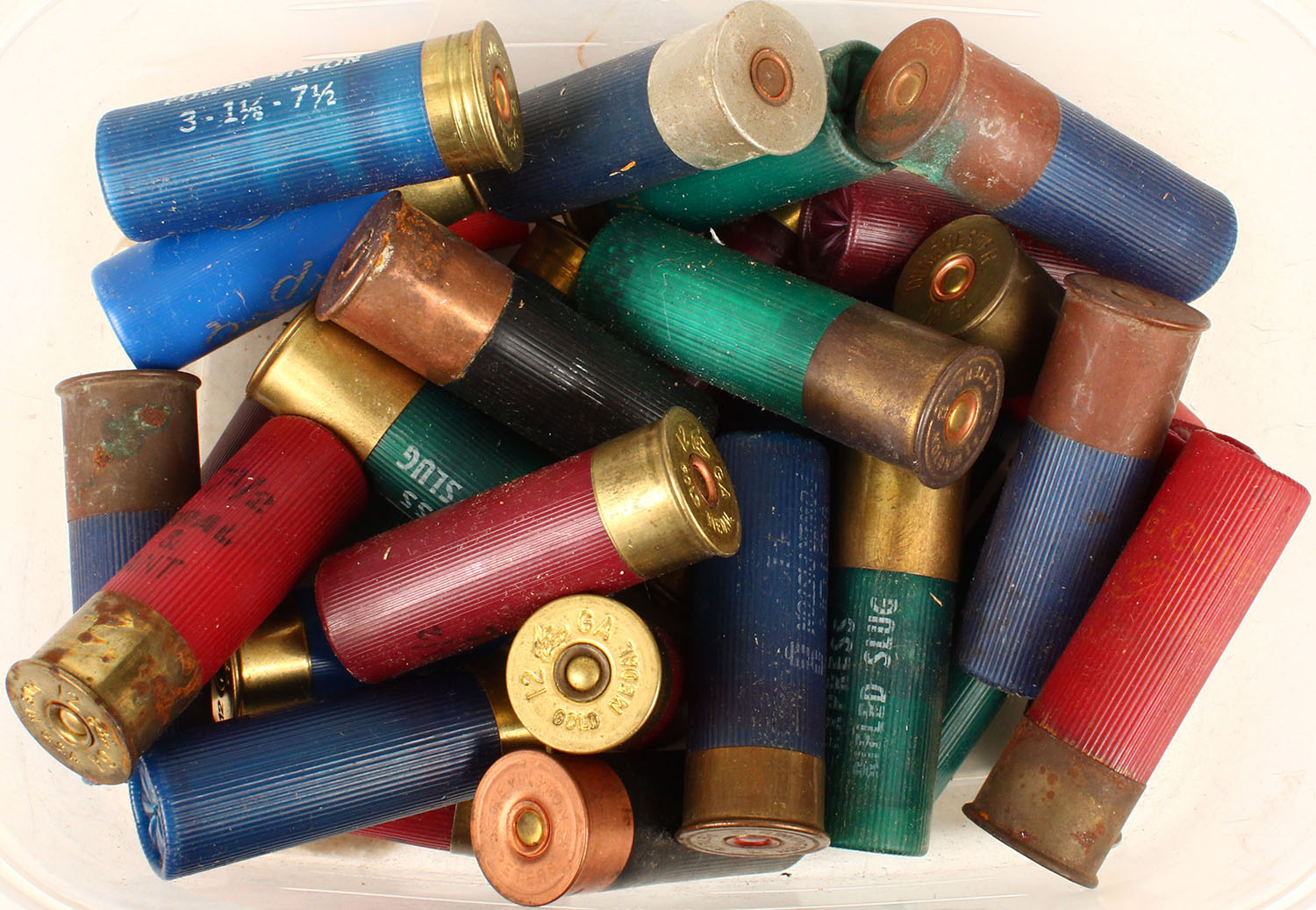 | Large lot of loaded plastic 12 gauge shotshells. Grade: Excelle...
