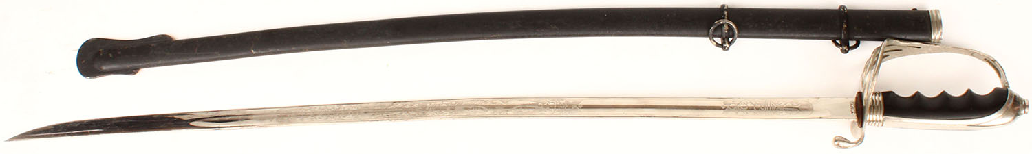 Wilkinson, Pattern 1888 Mk1 type 2 saber, right side of blade is marked, crown over ''VR'', ''11 97'', ''WILKINSON LONDON'', left side of blade has proof marks, blade has light wear & shows patina. Grade: Very Good + - Value: 100 to 300