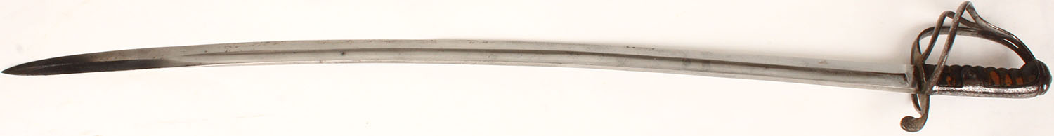 unknown, Cavalry style saber, no markings on blade, blade has light wear & light patina, guard & grip have heavy wear & patina. Grade: Very Good + - Value: 20 to 60