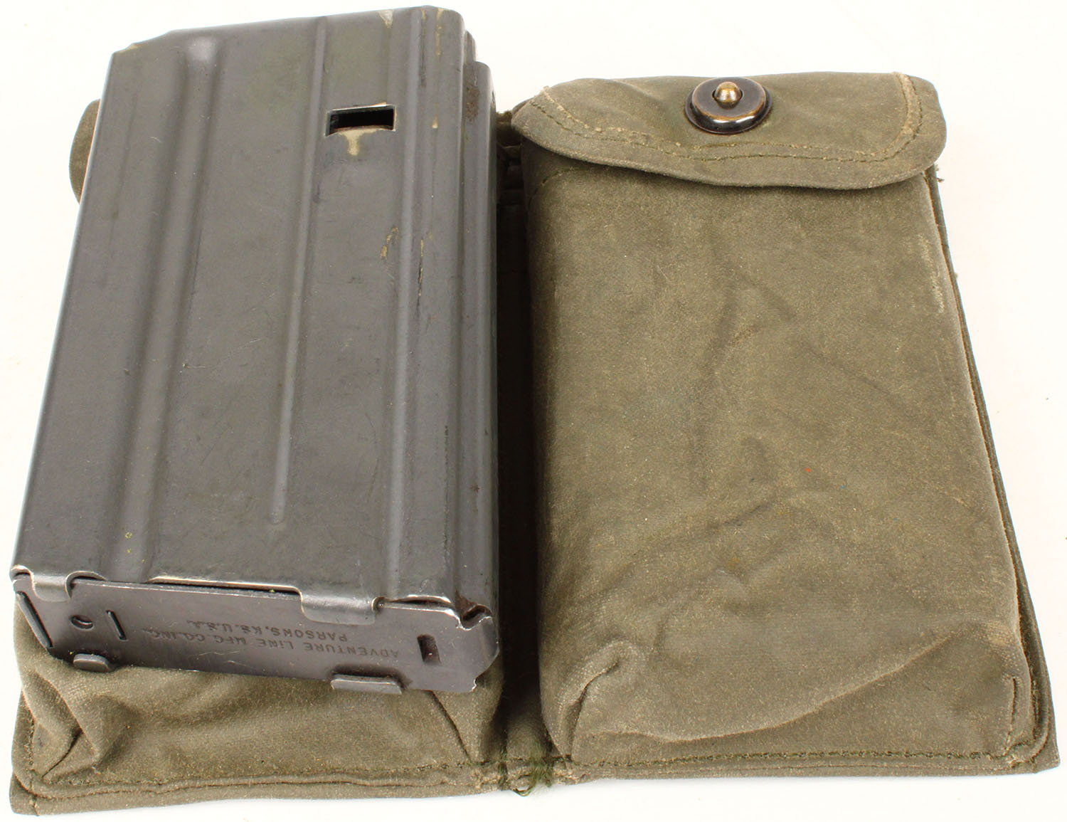 US, Early Vietnam Era, Rubberized two cell, M16 20 round mag pouch, comes with two 20 Rd. AR Mags. Grade: Very Good ++ - Value: 30 to 120