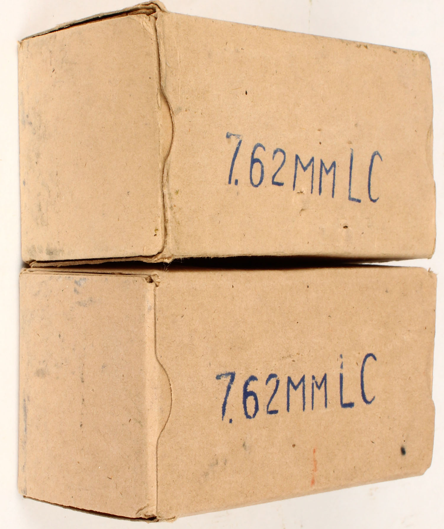 Lot of two, Chinese, 7.62mm (.30 Carbine) 50 Rd. Box's, both Full, ammo is excellent but is known to be Berdan primed & corrosive. Grade: Excellent - Value: 30 to 100