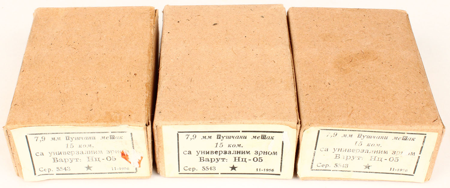 | Lot of three, Yugo, 7.9mm, 1956 dated, 1pc, Full, buff box with ...