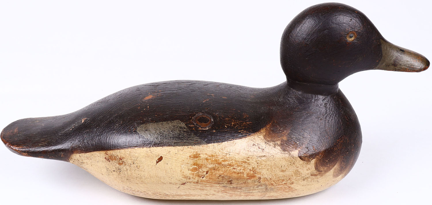 Bluebill Drake by Mason Decoy Company or Hays Decoy Factory, Detroit, MI,1896-1924 standard grade, glass eyes, solid