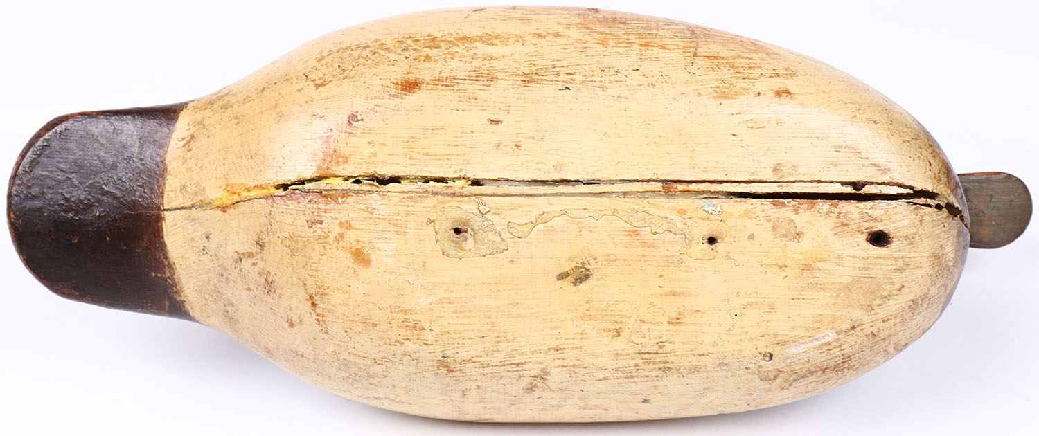 wood, has age crack on bottom, original/restored paint. Grade: Excellent - Value: 50 to 150