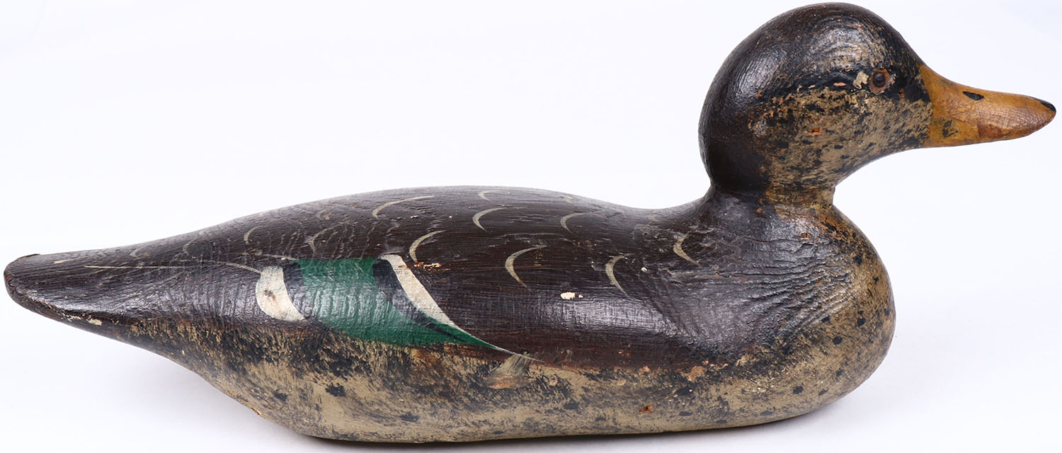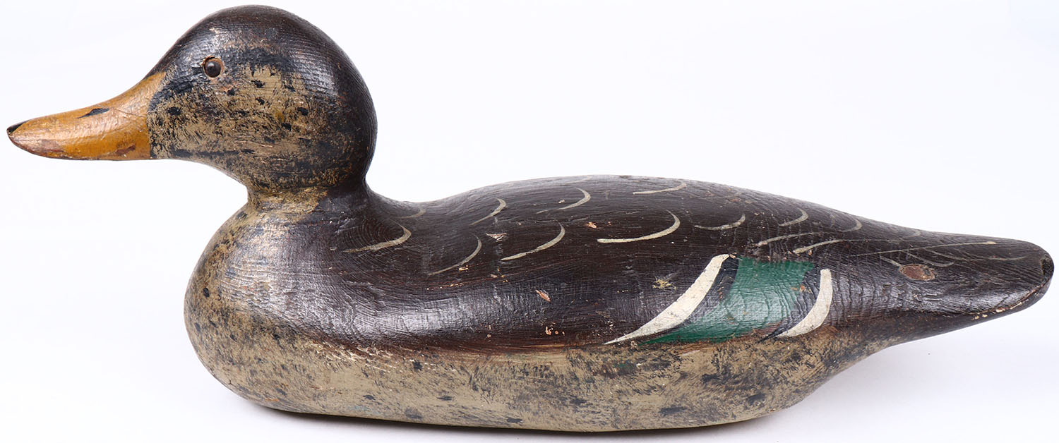 Mallard Hen by Mason Decoy Company, Detroit, MI,1896-1924 standard grade, tack eyes, solid wood, original paint, structurally excellent, matched pair to Lot 6030. Grade: Excellent - Value: 150 to 450