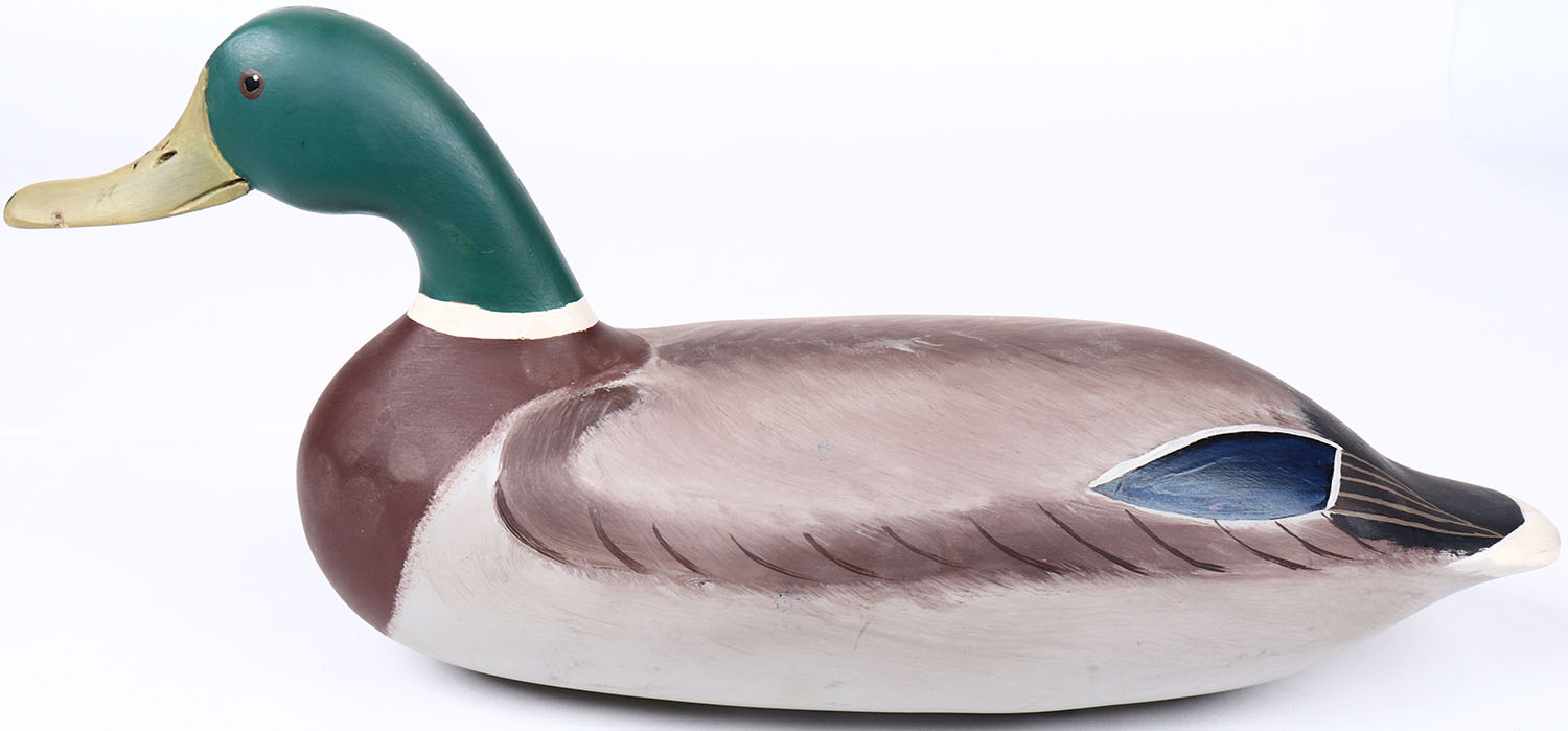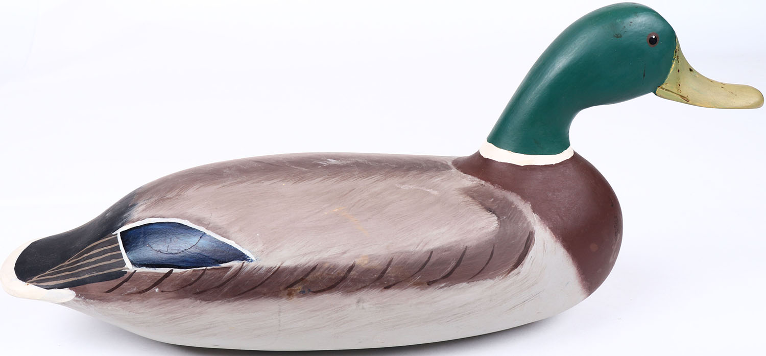 Mallard Drake by Robert G. Litzenberg, Eldton, MD, painted eyes, solid wood, repainted, structurally excellent. Grade: MINT - Value: 50 to 100