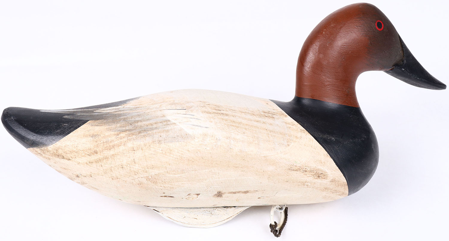 Canvasback Drake by Charlie Pierce, painted eyes, solid wood, original paint, structurally excellent. Grade: MINT - Value: 50 to 100