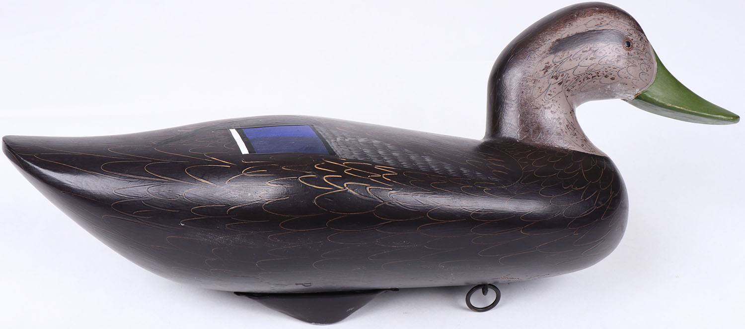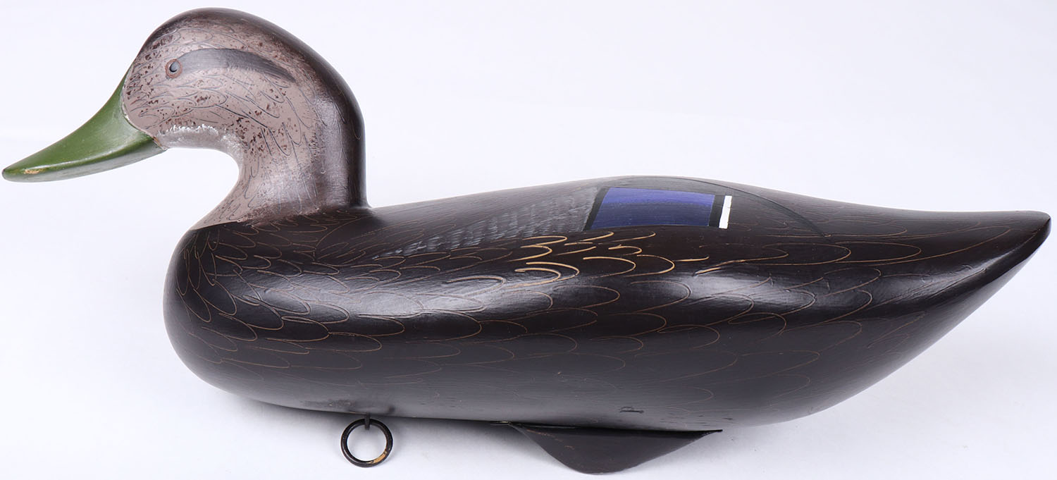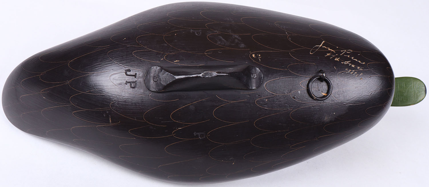 Black Duck by Jim Pierce, Havre de Grace, MD, painted eyes, solid wood, repainted with comb painting. Grade: MINT - Value: 50 to 100