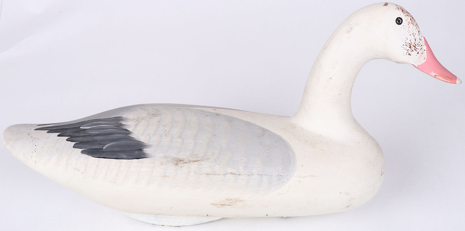 Snow Goose by Capt. Harry Jobes Havre de Grace, MD, painted eyes, solid wood, repainted, structurally excellent. Grade: Excellent + - Value: 70 to 150
