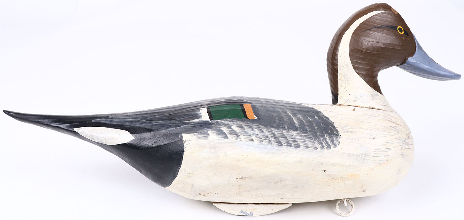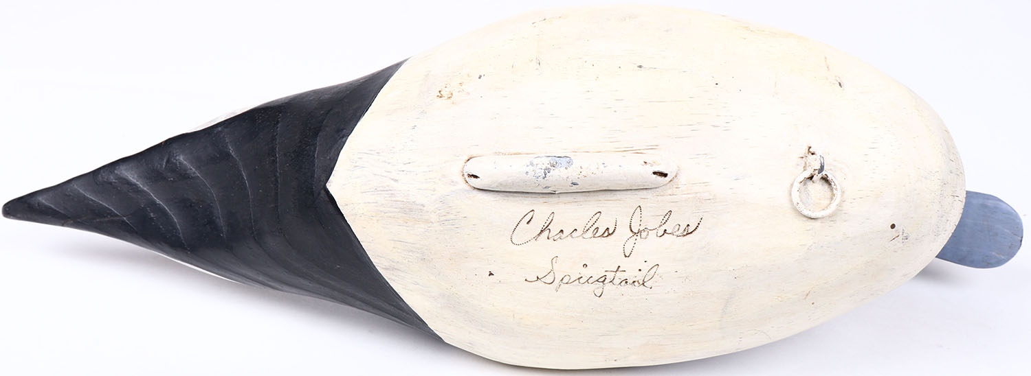 Pintail Drake by Charles Jobes, Havre de Grace, MD, painted eyes, solid wood, repainted, signed on bottom, structurally excellent. Grade: Excellent + - Value: 50 to 100