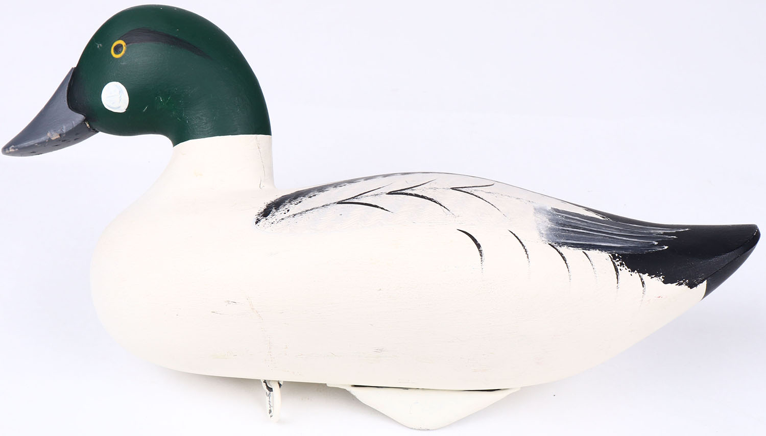 Goldeneye Drake by Jim Pierce & Son Decoys Havre de Grace MD, painted eyes, solid wood, original paint, structurally excellent. Grade: Excellent + - Value: 50 to 100