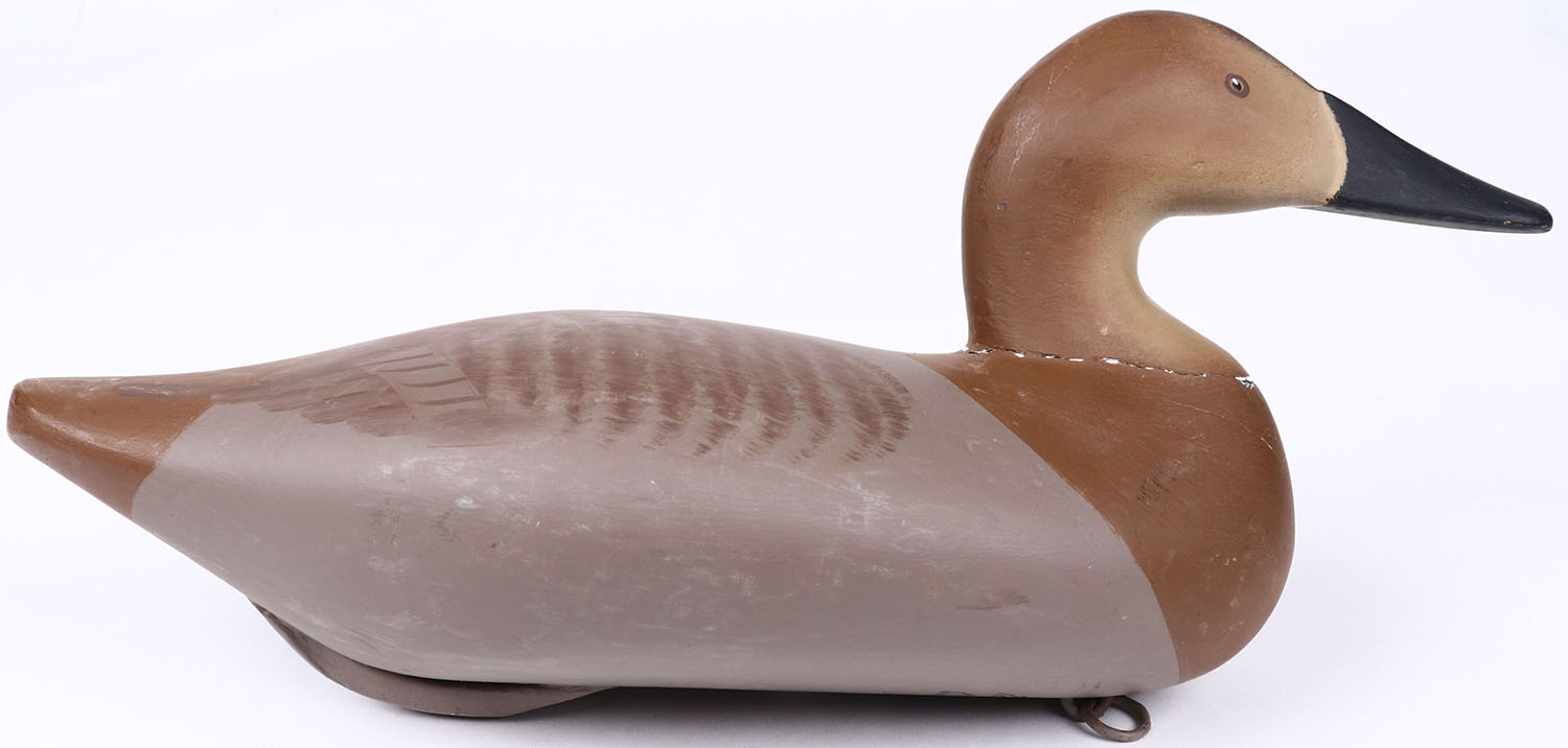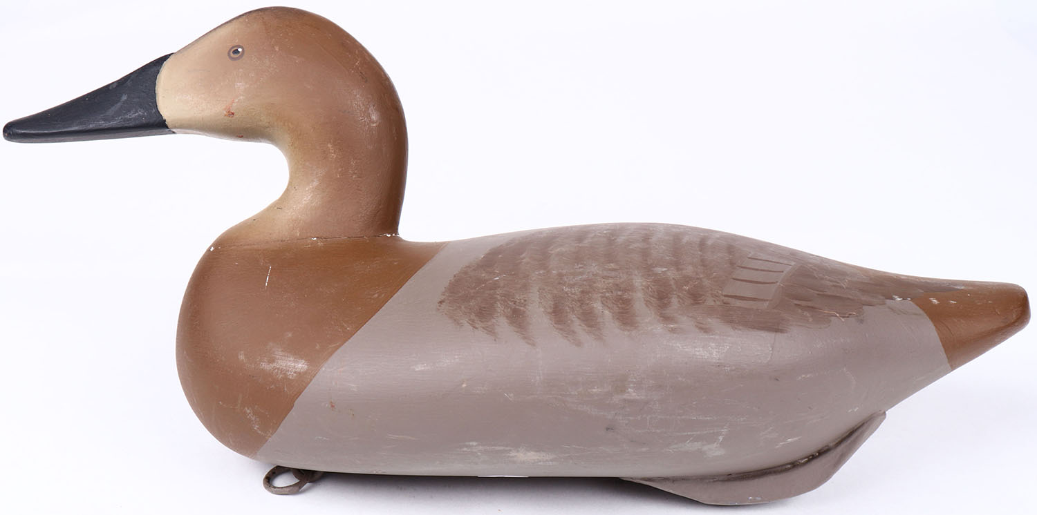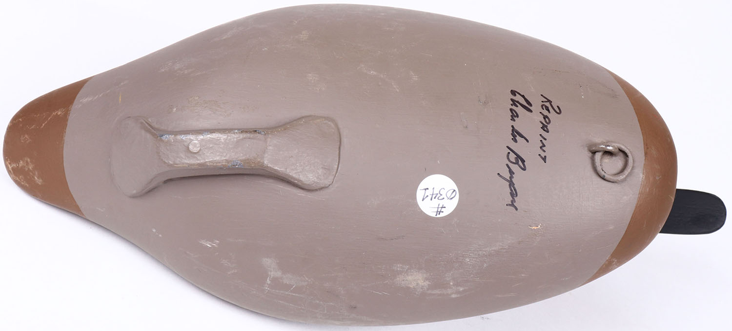 Canvasback Hen by Charlie Bryan, Balto, MD, painted eyes, solid wood, structurally excellent, repainted, signed on bottom. Grade: MINT - Value: 40 to 80