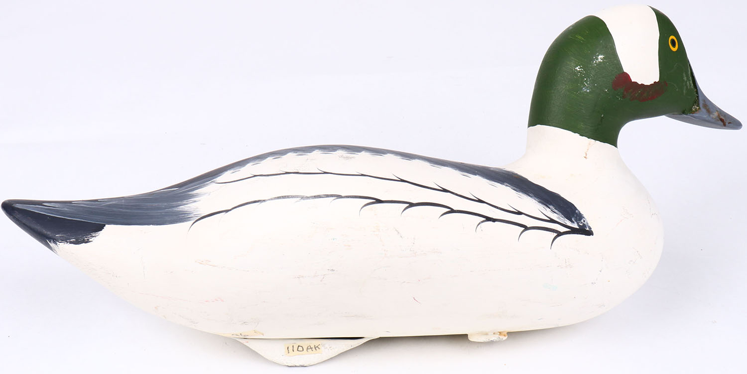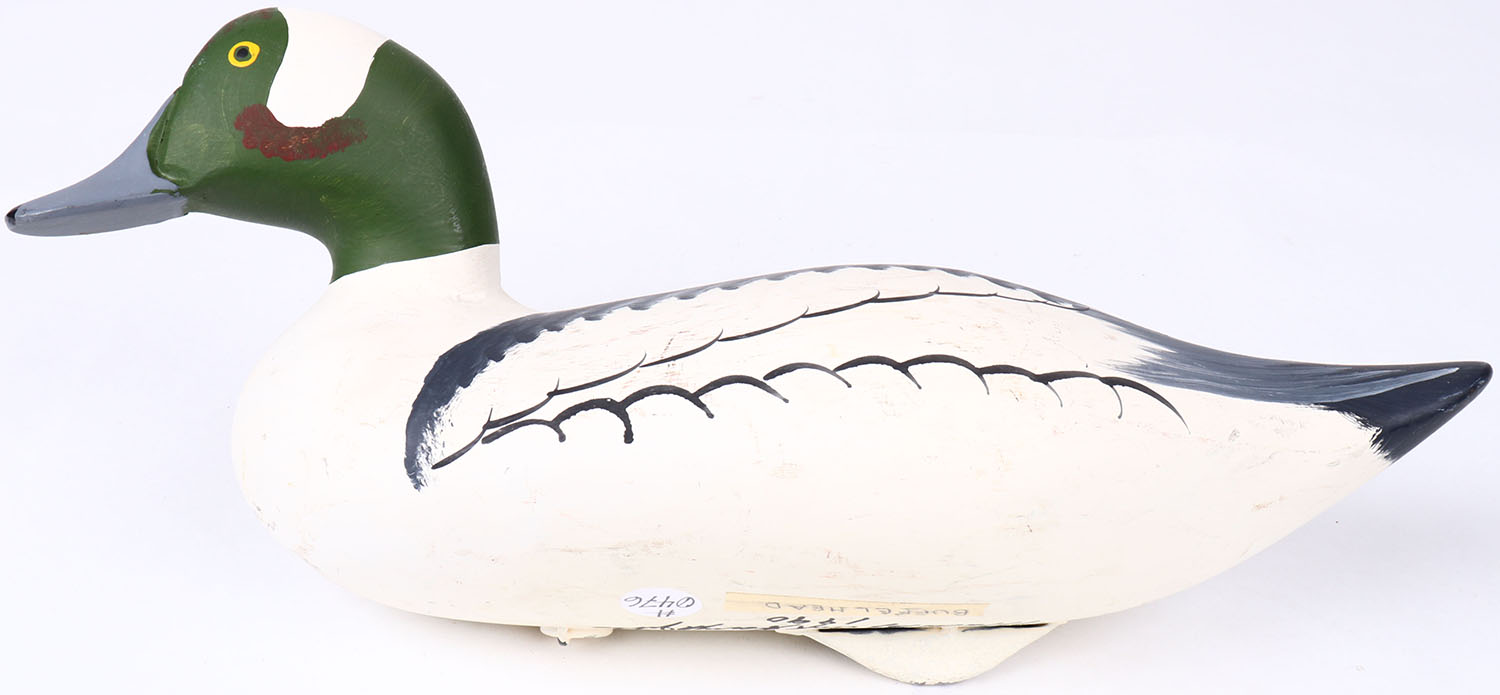 Bufflehead Drake by Capt. Harry Jobes Havre de Grace, MD, painted eyes, solid wood, original paint, structurally excellent, signed on bottom. Grade: Excellent - Value: 70 to 150