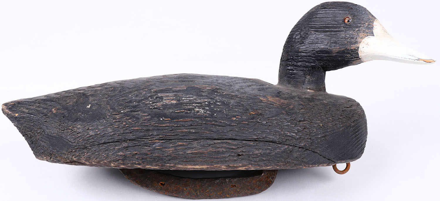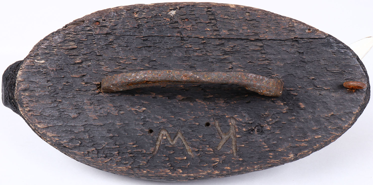 Coot by unknown maker, glass eyes, solid wood, branded KW on bottom, original paint, structurally excellent. Grade: Excellent - Value: 30 to 60