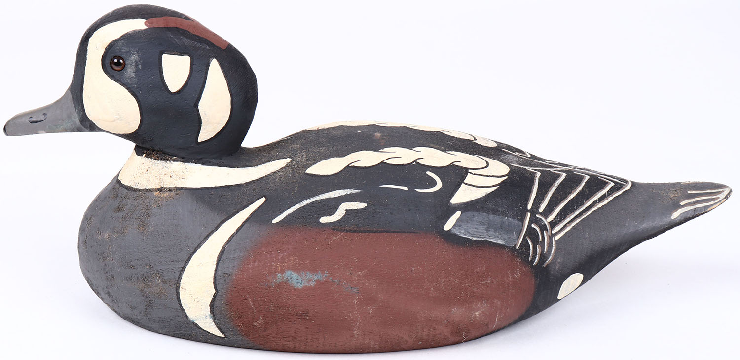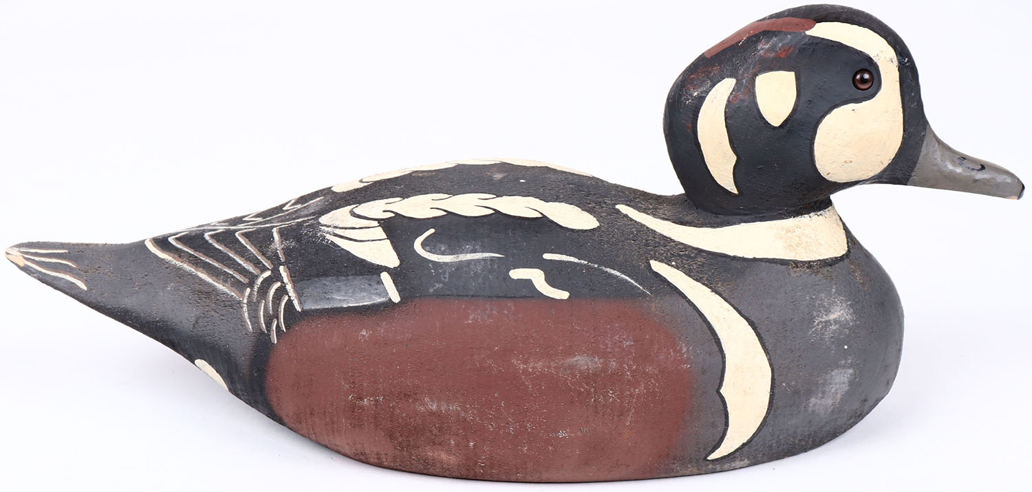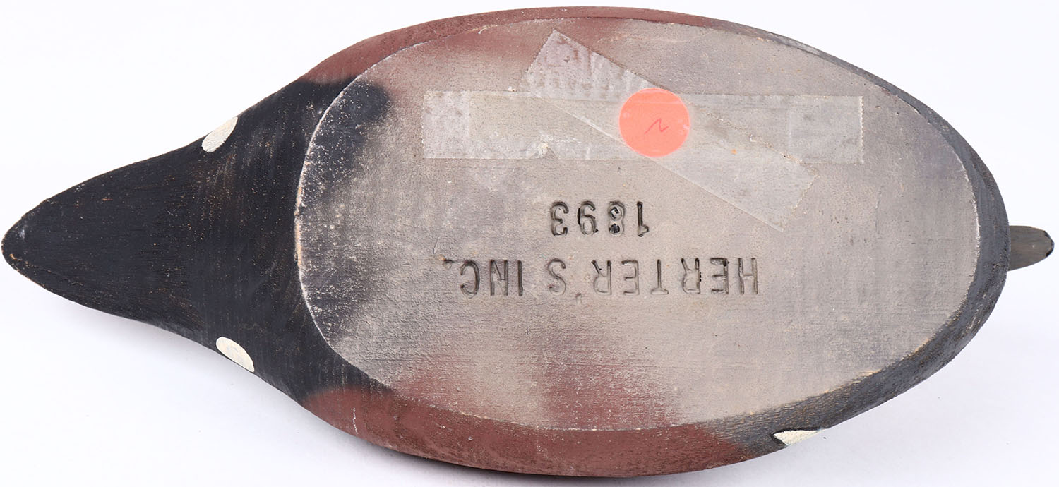 Harlequin Drake By Herter's Inc. glass eyes, solid wood, original paint, structurally excellent, branded HERTER'S INC on bottom. Grade: Excellent ++ - Value: 50 to 100