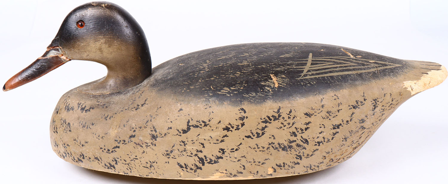 Mallard Hen by Herters, glass eyes, hollow wood, original paint, bill has been repaired. Grade: Very Good + - Value: 40 to 80