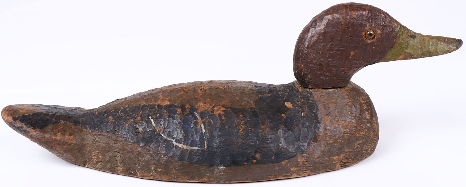 Black Duck by unknown factory, glass eyes, hollow wood, original paint, structurally excellent. Grade: Excellent - Value: 10 to 20