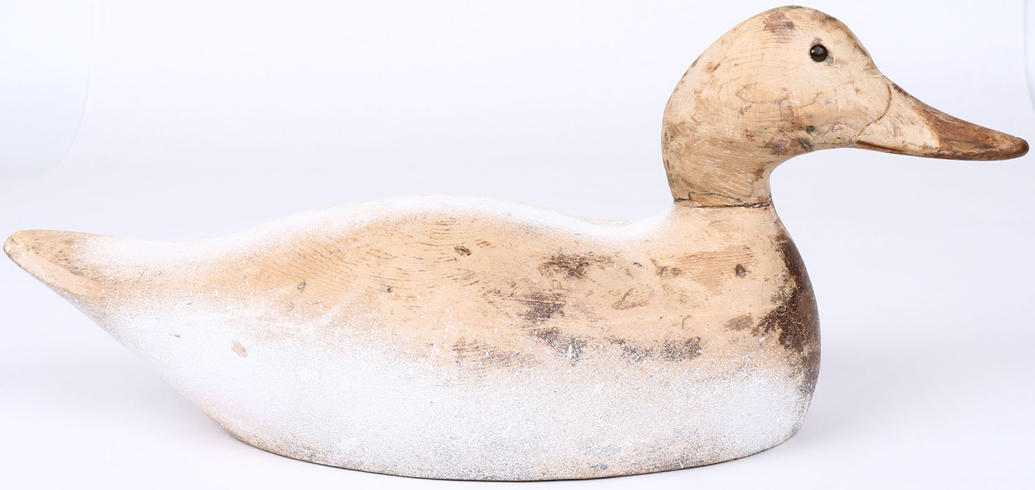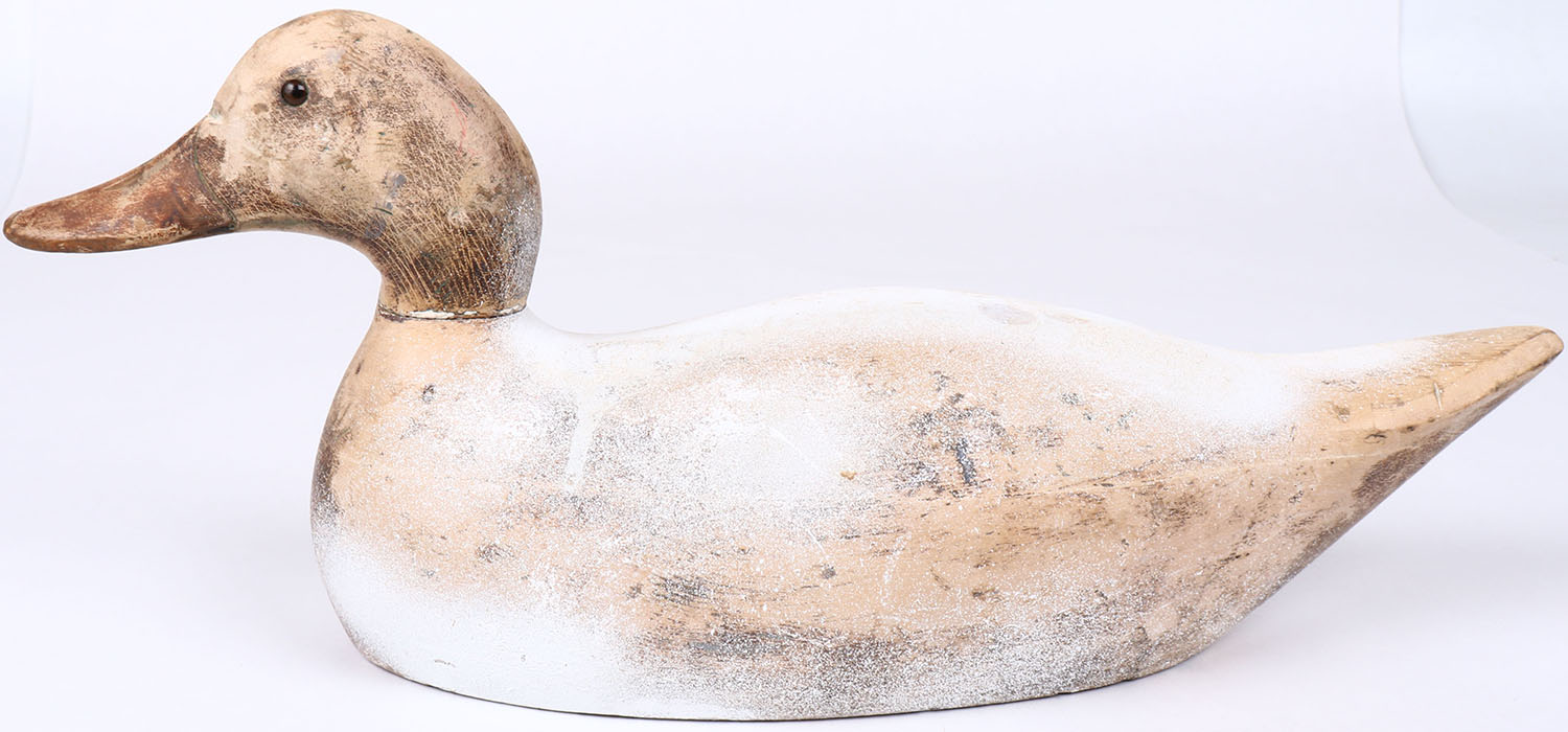 Mallard by Evans Decoy Co., WI, glass eyes, solid wood, original paint, structurally excellent, stamped on bottom. Grade: Excellent - Value: 20 to 50
