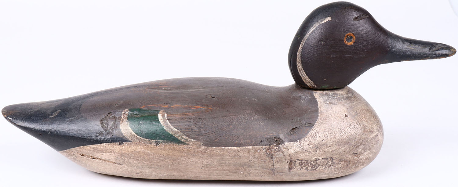 Pintail Drake by Mason Decoy Company, Detroit, MI,1896-1924 standard grade, painted eyes, solid wood, structurally excellent. Grade: Excellent - Value: 50 to 100