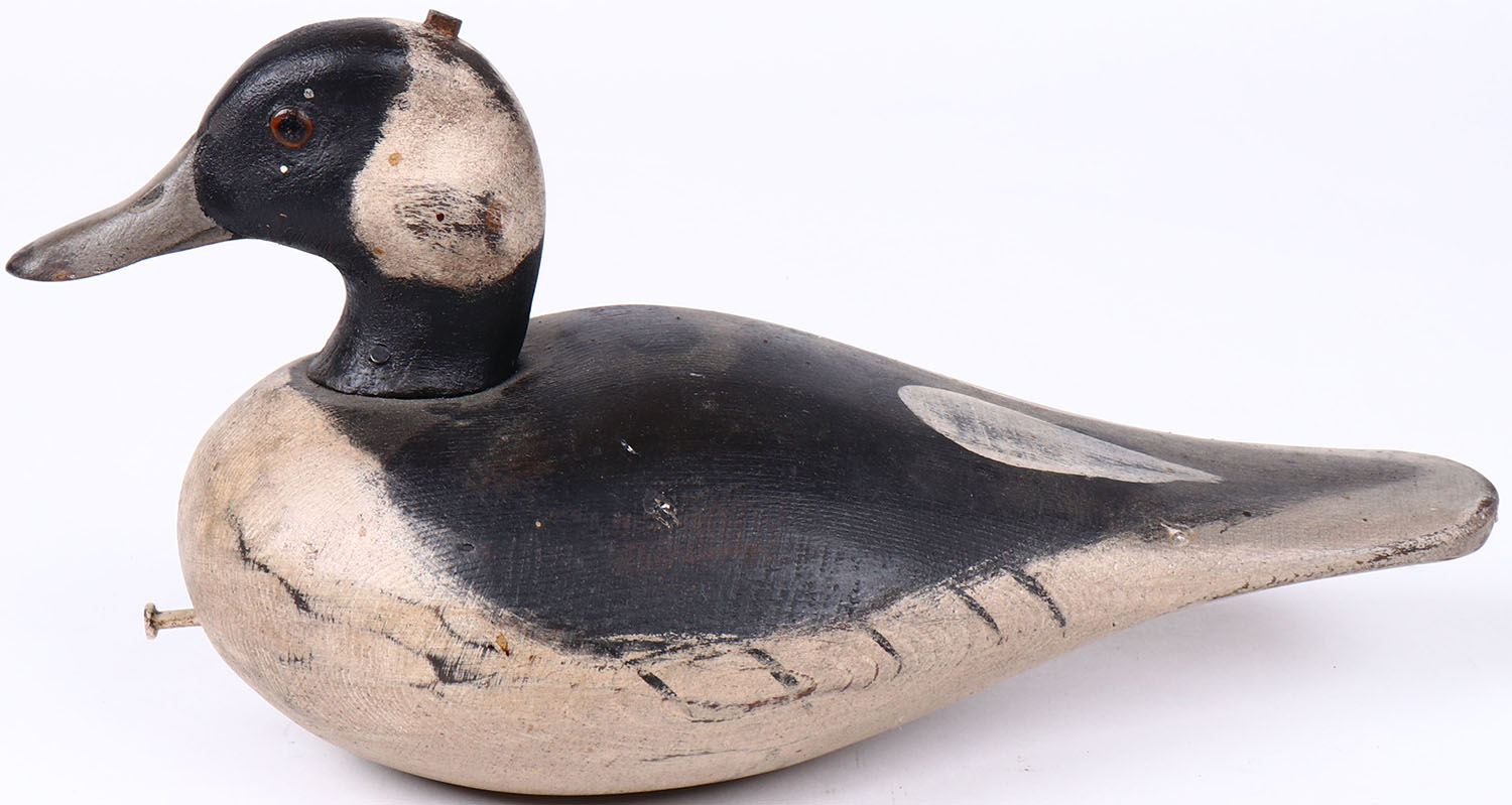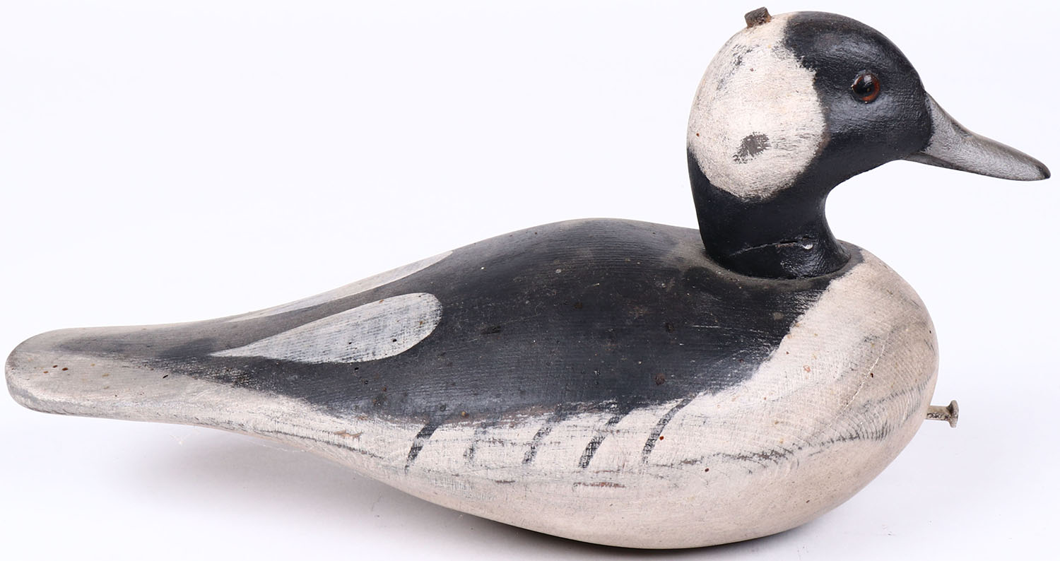 Bufflehead Drake by WMW, glass eyes, hollow wood, original paint, structurally excellent, branded WMW on bottom. Grade: Excellent ++ - Value: 30 to 60