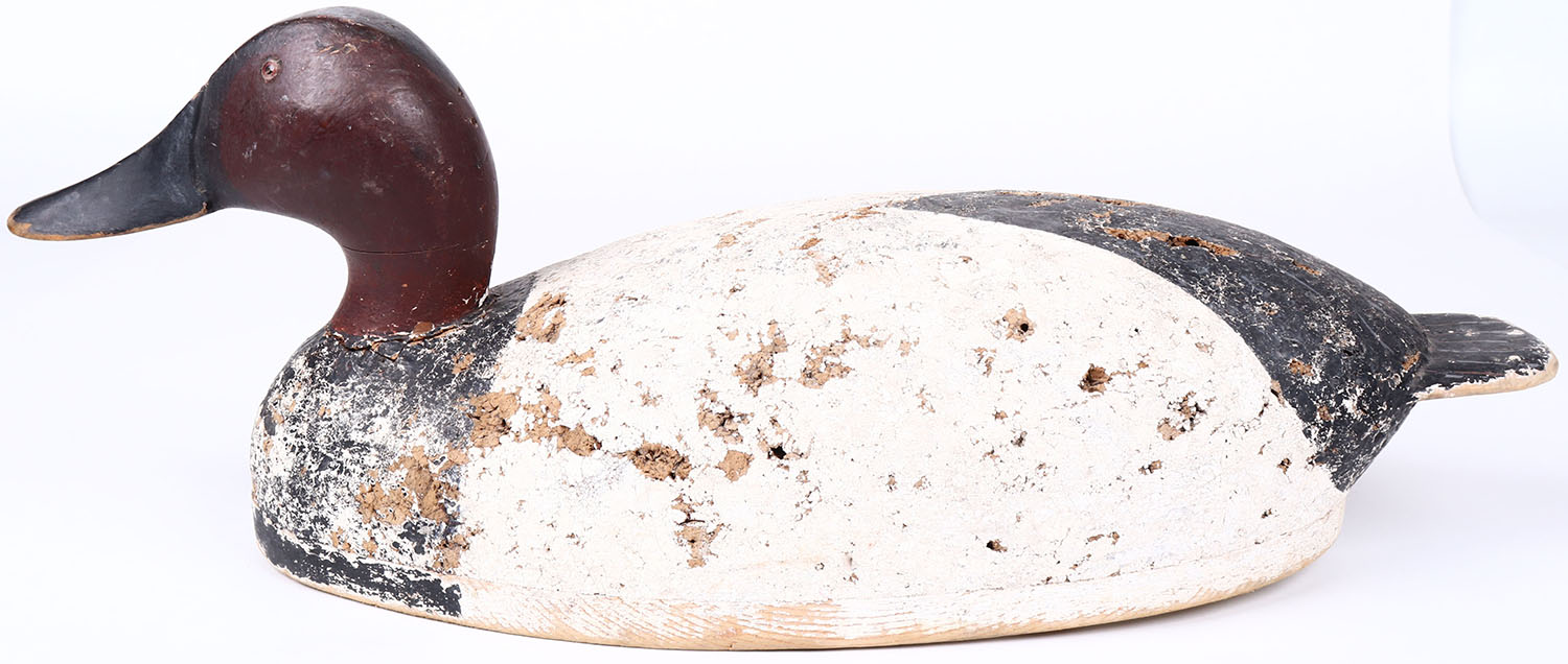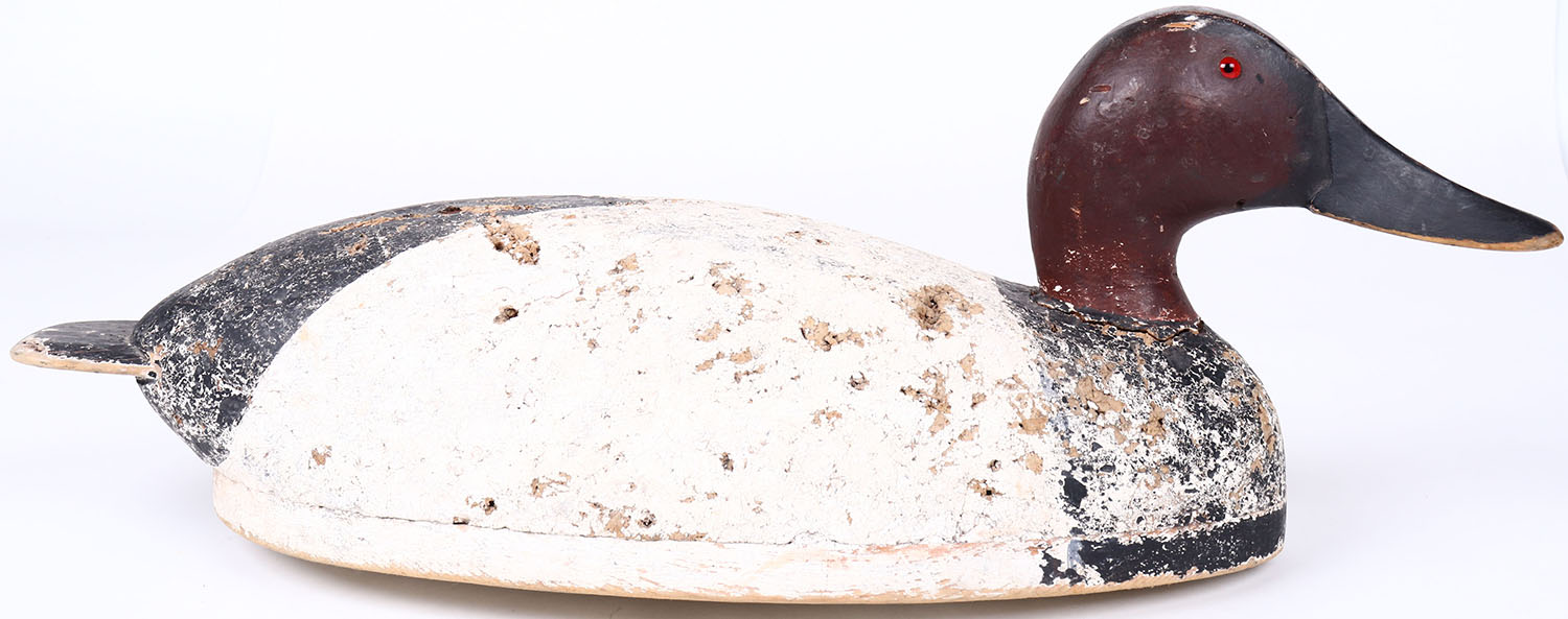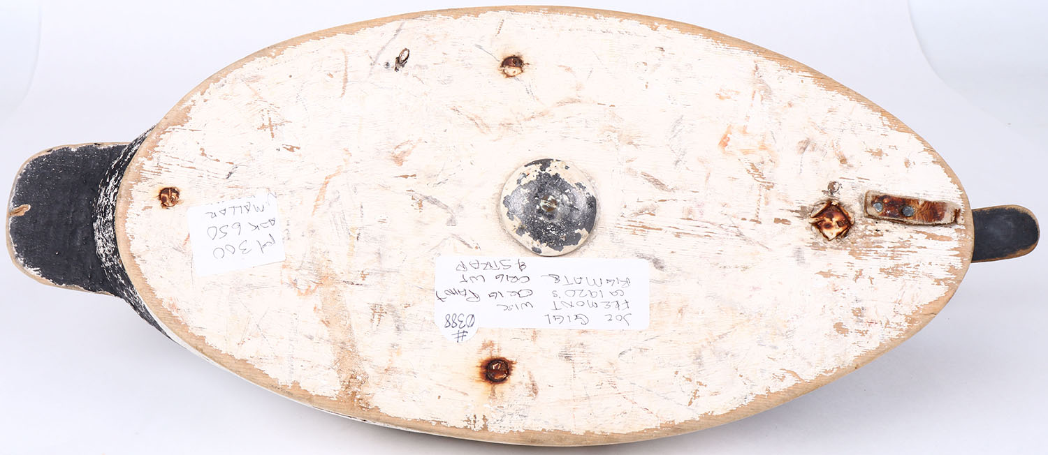 Canvasback Drake by Joe Gigl, Fremont Wisc, glass eyes, solid cork body, original paint with typical wear. Grade: Very Good ++ - Value: 50 to 100