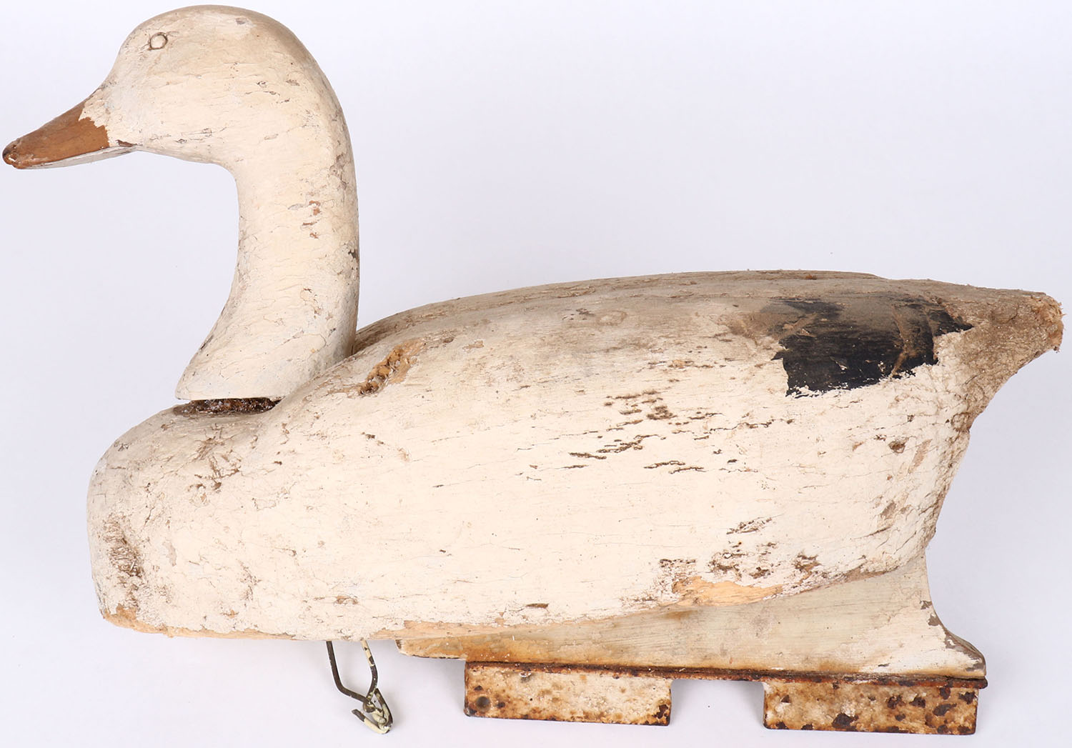 Snow Goose by unknown maker Herters?, glass eyes, solid balsa wood, original paint with typical wear. Grade: Very Good + - Value: 50 to 100
