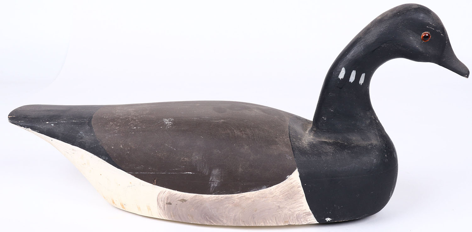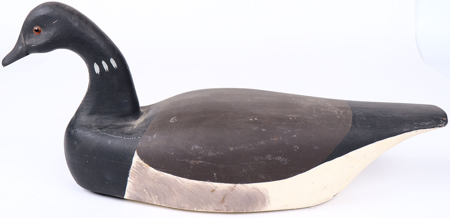 Atlantic Brant by unknown, glass eyes, hollow wood, original paint, structurally excellent, branded on bottom by NEW JERSEY WILDFOWLERS. Grade: MINT - Value: 40 to 80