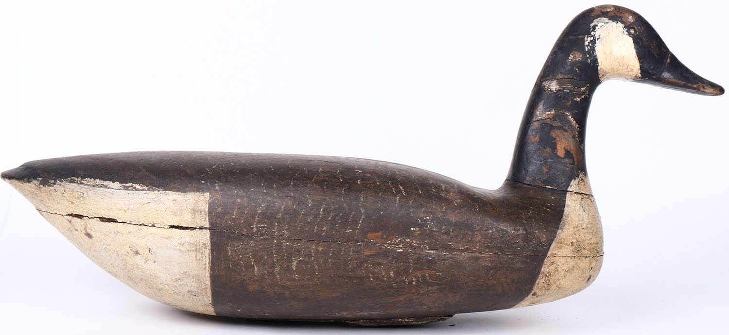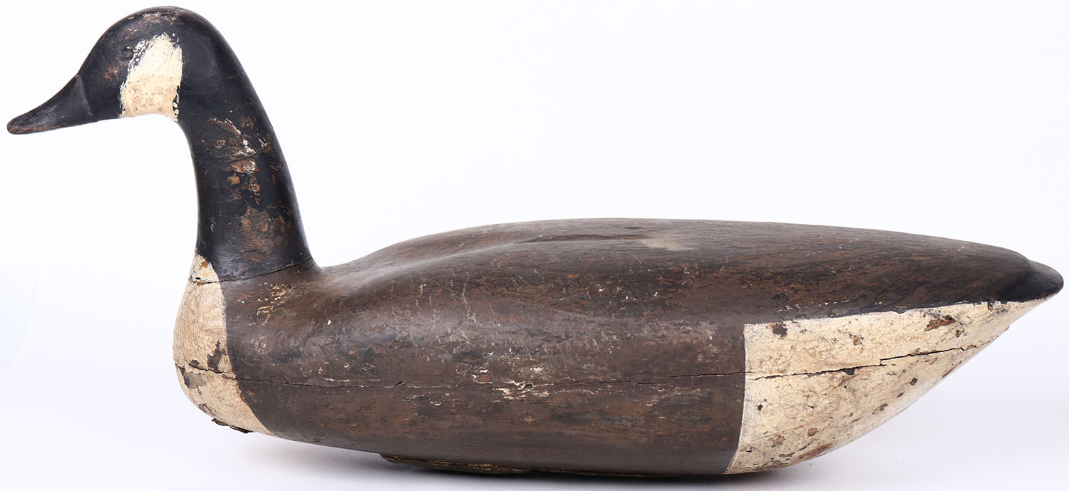 Canada Goose by unknown maker, NJ, painted eyes, hollow wood, original paint with typical wear. Grade: Excellent - Value: 100 to 200