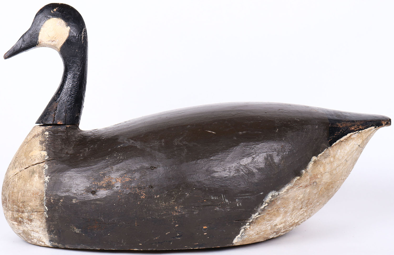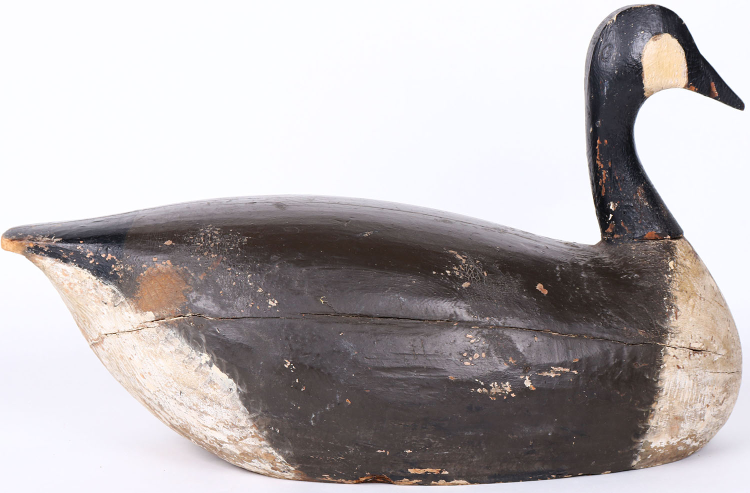 Canada Goose by unknown maker, painted eyes, hollow wood, , original paint, has age cracks on body, original paint. Grade: Very Good ++ - Value: 50 to 100
