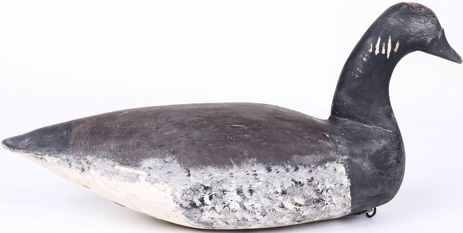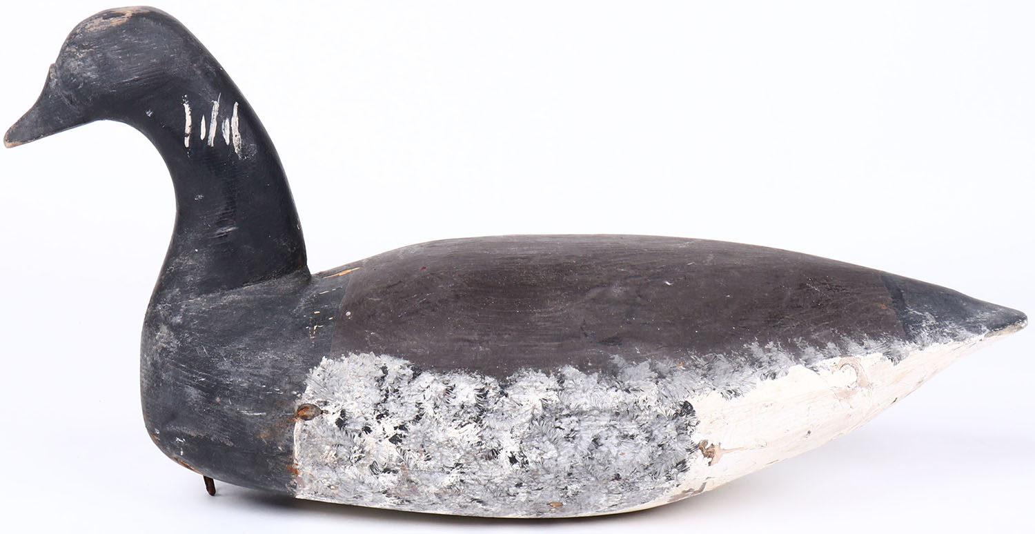 Atlantic Brant by unknown maker, no eyes, hollow wood, original paint, structurally excellent. Grade: Excellent - Value: 30 to 60