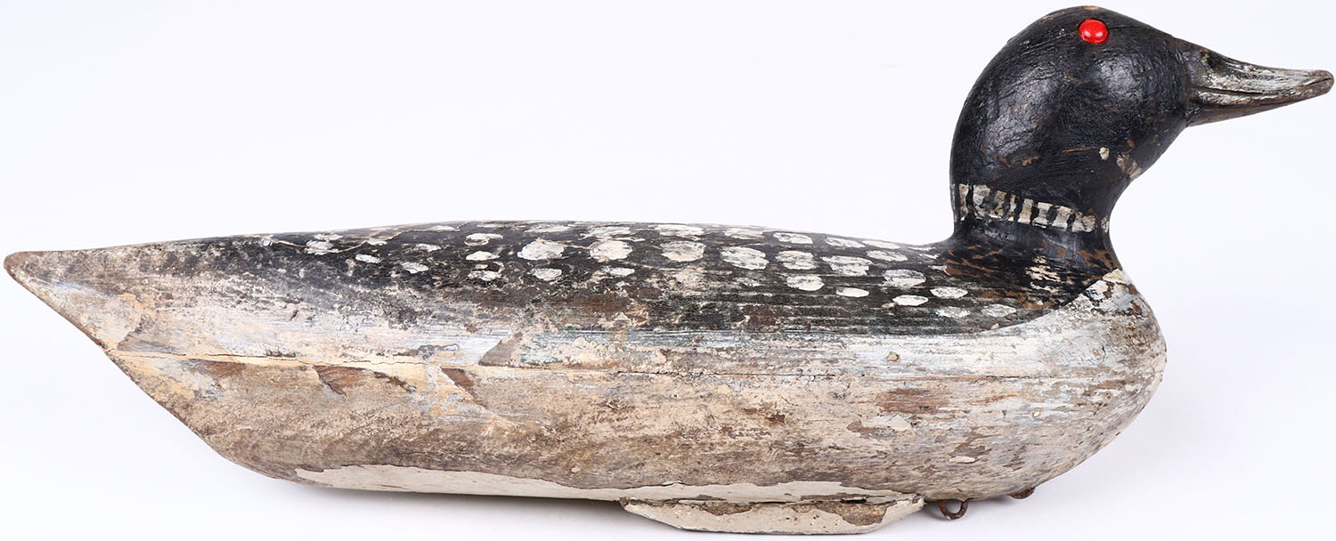 Loon by unknown maker, painted eyes, hollow wood, original paint, structurally excellent. Grade: Excellent - Value: 50 to 150