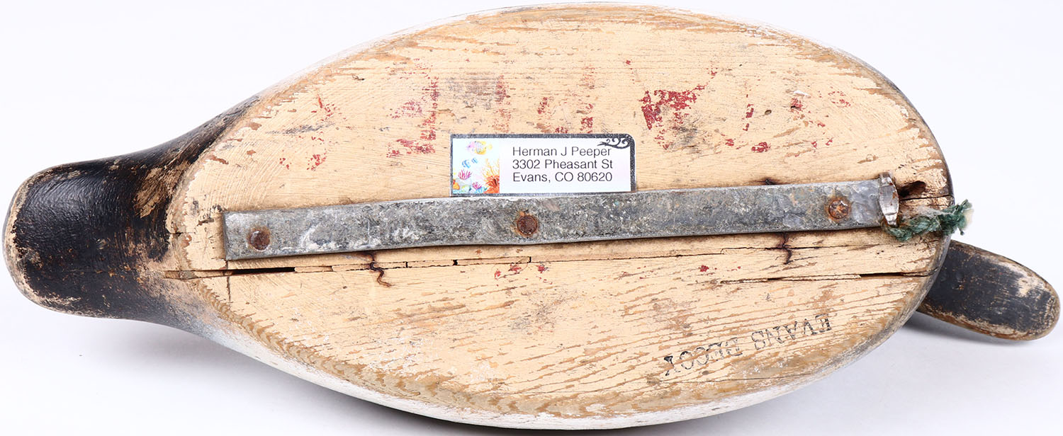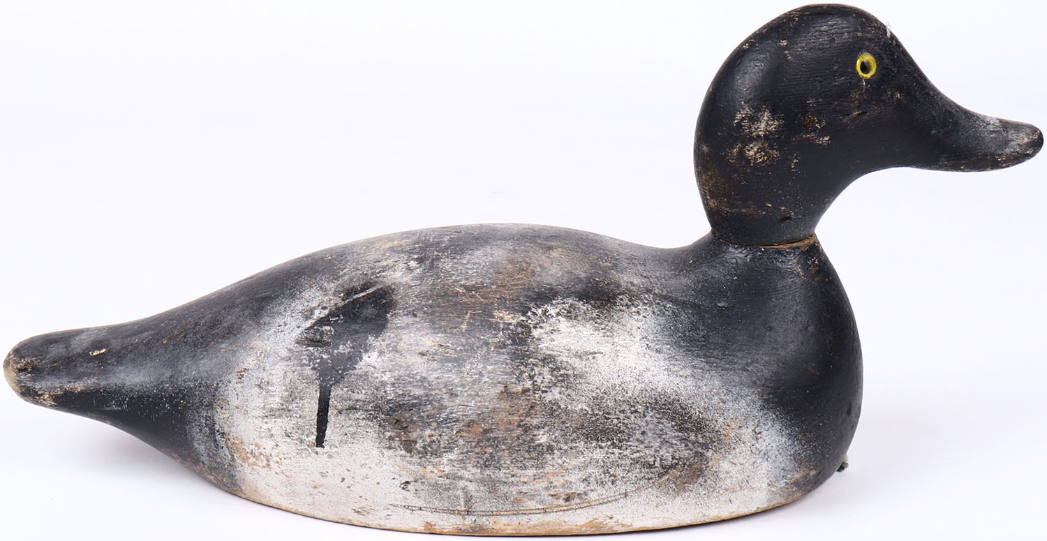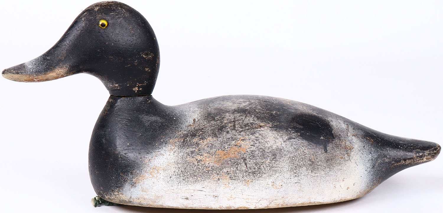 Bluebill Drake by Evans Decoy Company, glass eyes, solid wood, original paint, structurally excellent. Grade: Excellent - Value: 30 to 60