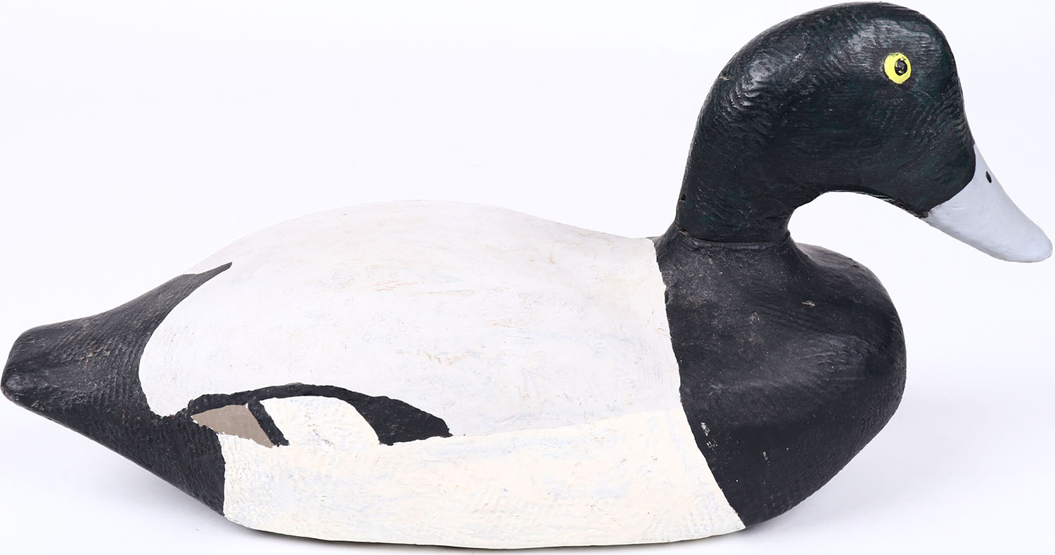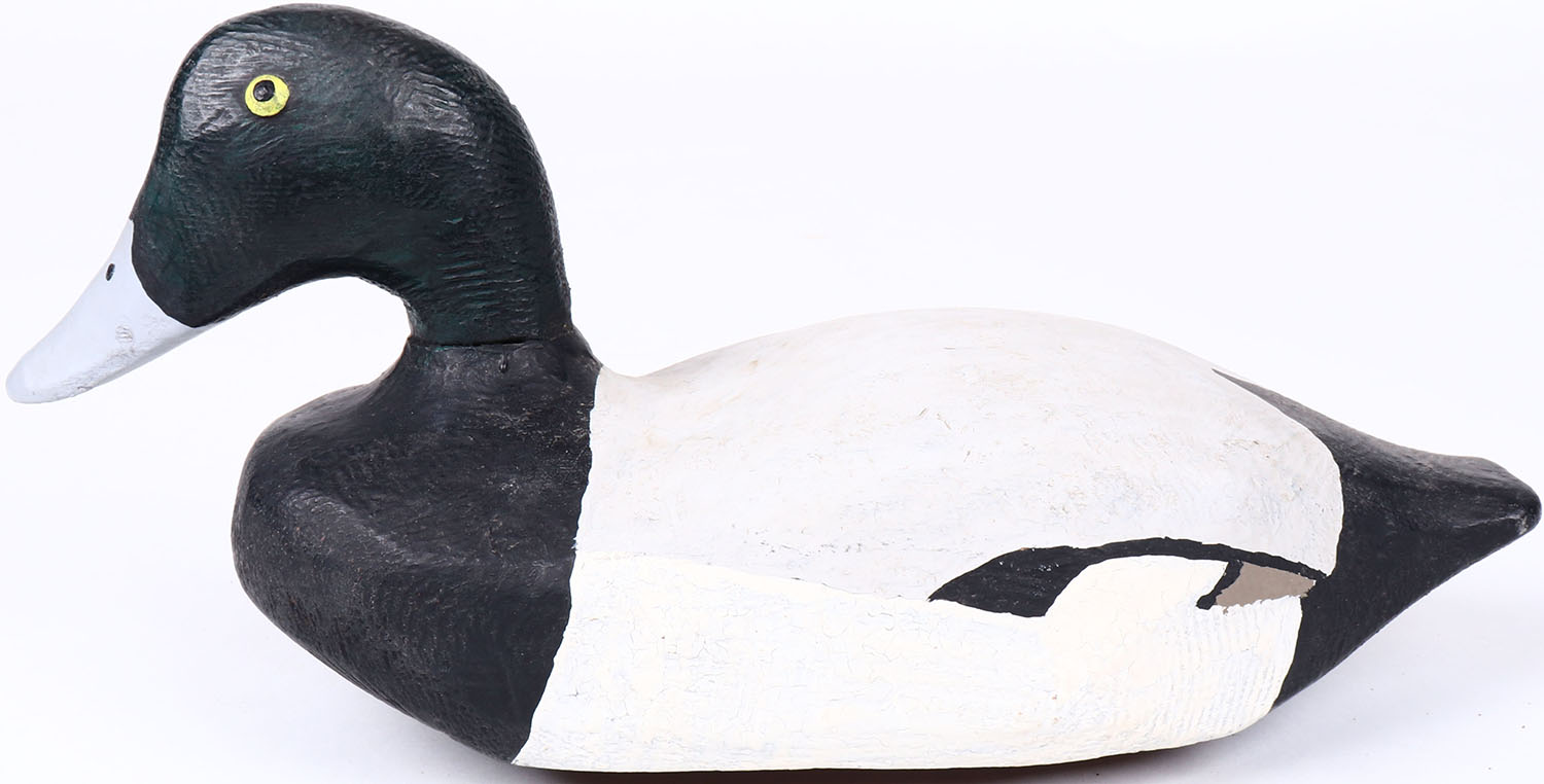 Bluebill Drake by unknown maker, painted eyes, solid wood, repainted, structurally excellent. Grade: Excellent - Value: 20 to 60