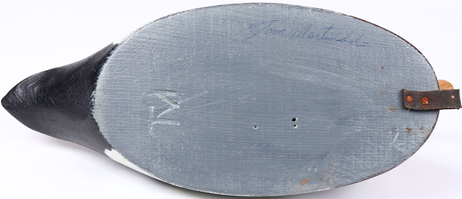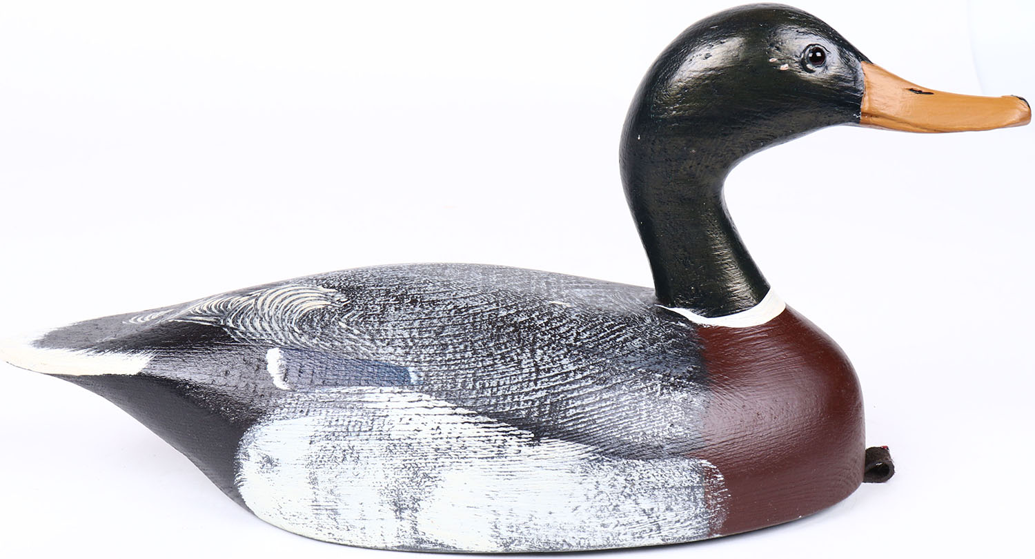 Mallard Drake by Tom Martindale, Ontario, Canada, glass eyes, solid wood, structurally excellent, branded TM on bottom and signed, original paint. Grade: MINT - Value: 50 to 100
